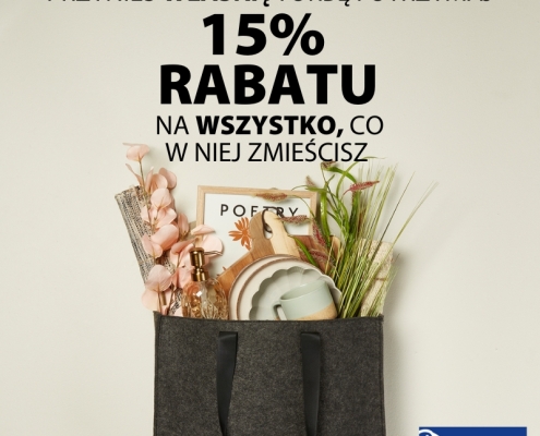 Przynieś własną torbę do JYSK i otrzymaj 15% rabatu na wszystko, co w niej zmieścisz.
